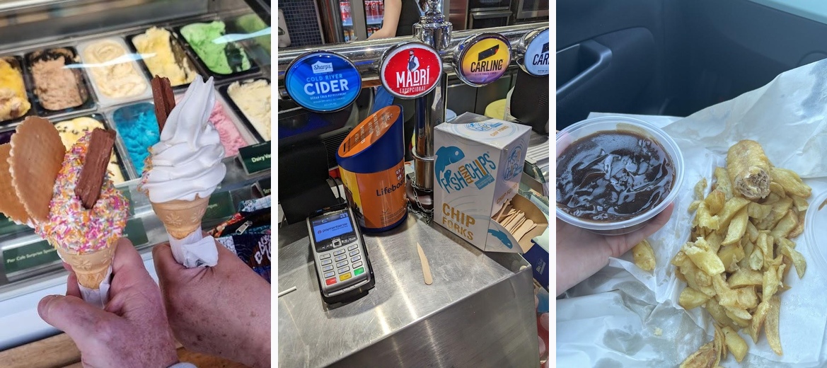 After a total disaster at another place (cold, soggy, clearly frozen chips), we came here not expecting much — but it was a game changer. These were proper chip shop chips: thick, golden, fresh out of the fryer and cooked just right. Crispy on the outside, fluffy on the inside, and actually seasoned. You could taste the difference straight away — no frozen nonsense, just real chips made with care. It’s exactly what you want when you’re by the sea: a simple tray of hot, satisfying chips that actually feel worth it. Absolutely made up for the earlier letdown — we’ll be coming back here next time, no question.