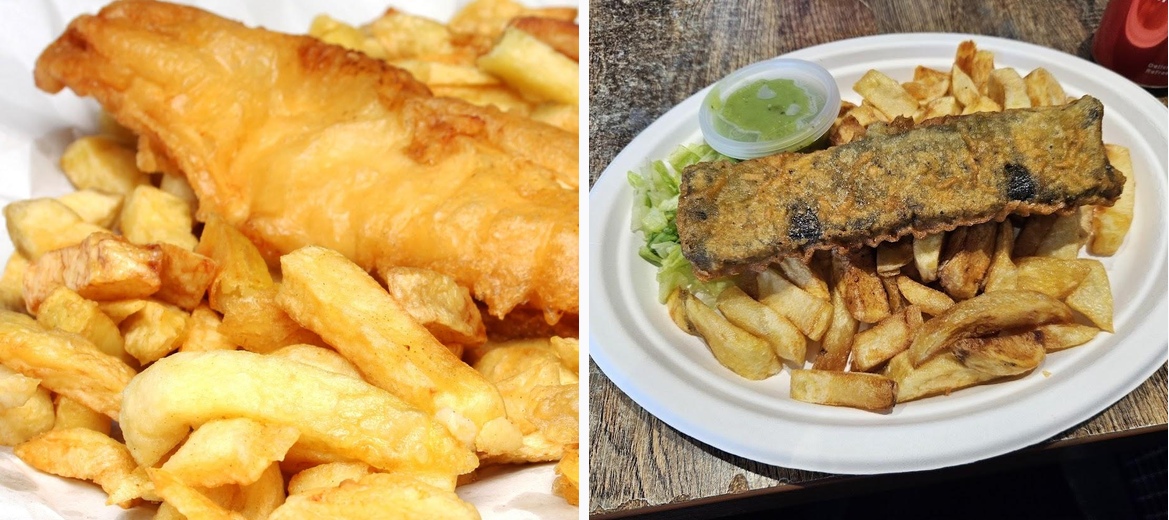 This really is the best fish & chips I’ve had in a very long time. Where to start? The portions are generous, the price very reasonable and the food is excellent: Fish : a small cod was more than enough for me - great size and the batter was so thin and crispy - like tempura and not soggy on the inside which it so often is. Chips: these chips are fresh from The fryer and look homemade - not like terrible mass produced frozen ones. They were crispy on the outside and fluffy inside and were nicely seasoned. Curry sauce: chip shop or Irish? Both amazing!! Mushy peas: yummy Vegan options : what a treat! The spicy cauliflower was perfectly cooked inside beautifully crisp batter. Other vegan options also available. I would definitely return. The staff were helpful and friendly.